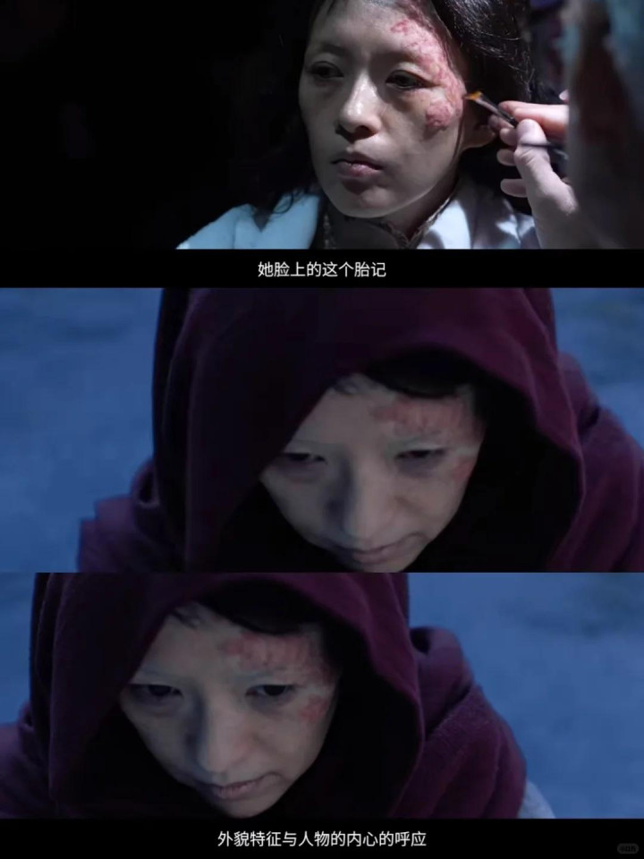 为贴合变装,她刻意淡化眉形、突露面部褐斑,还贴上了形似血瘤的胎记,透彻放置颜值上风。 詹周氏从小被排挤讥刺,性格自卑到了顶点,待东说念主接物永远唯唯诺诺。章子怡统统收起自己骄贵,演活了这个卑微的凡人物。