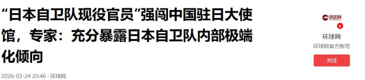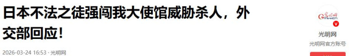 结语 一言以蔽之,这起日本自保队官员强闯中国使馆的事件,透彻撕下了日本右翼势力的伪装,也让全宇宙看清了日本里面正在积贮的危急力量。 中国抠门国度尊荣和社交东谈主员安全的决心是坚强不移的,绝阻扰许任何势力的寻衅与糟踏。高市早苗政府淌若不断执迷不反,最终必将搬起石头砸我方的脚。 老闫就给众人聊到这了,下期内容我们不见不散~ 参考信息: 日本罪人之徒强闯我大使馆要挟杀东谈主,社交部复兴!-2026-03-24 16:53·光明网