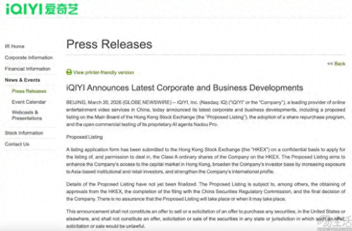 日前爱奇艺方面发布公告称,已以守密形貌向香港聚合来回所提交上市央求表,央求公司A类等闲股在港交所上市及来回许可。 对此爱奇艺方面默示,“这次拟议上市旨在晋升公司干与香港成本商场的渠谈,通过增多对亚洲机构及零卖投资者的战役拓宽公司投资者基础,并加强公司的海外形象”。同期其强调,拟议上市的细节尚未最终细则,无法保证拟议上市将会进行或何时进行。