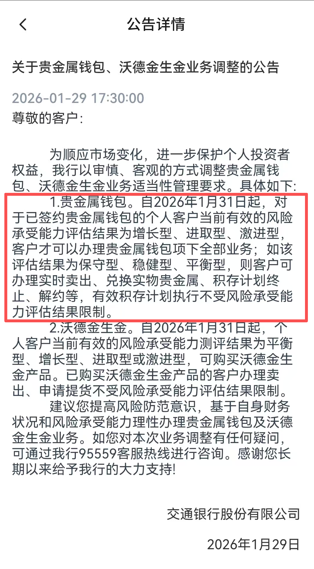 受特朗普提名“鹰派”凯文・沃什出任好意思联储主席音书影响,贵金属市集出现巨幅波动。1月30日,现货黄金单日最大跌幅超12%,盘中最低触及4682好意思元/盎司,收盘下落9.25%报4880.03好意思元/盎司。 财联社记者珍重到,就在本周贵金属价钱出现剧烈波动前后,有两家国有大行要求客户在办理干系业务时需加多风险评测。农业银行公告自1月30日起,对个东说念主客户参与存金通黄金蕴蓄走动时,需赢得严慎型及以上评估后果。交通银行公告透露,自1月31日起,客户办理干系业务也有了风险评测要求。 如以本年1月份为限,则已有工行、农行、交行三家国有大行明确公告干系要求。在此时期,黄金及多种贵金属均迎来一波快速上升行情。 记者多方采访了解到,前述银行的干系要乞降休养或不触及客户准初学槛的变动,主淌若业务办理经由中加多全部风险评测要求。从近期一轮业务法规休养来看,国有大行和股份行对个东说念主客户参与贵金属业务的风险请示和风险驻防均相对充分,呈现集体审慎的气魄。 1月份三家国有大行要求黄金蕴蓄业务前置风险评测 财联社记者珍重到,本年1月份,已有工商银行、农业银行、交通银行三家国有大行作出相同要求。 交通银行最新公告透露,1月31日起,增长型、越过型、激进型风险品级客户可办理贵金属钱包全部业务,如该评估后果为保守型、肃穆型、均衡型,则客户可办理及时卖出、兑换什物贵金属、蕴蓄霸术圮绝、解约等,灵验蕴蓄霸术施行不受风险承受才略评估后果戒指。 另外,均衡型及以上客户可购买“沃德金生金”家具,已购买沃德金生金家具的客户卖出存量家具、提货不受戒指。 据悉,交通银行的贵金属钱包包含黄金买入卖出(活期金)、黄金蕴蓄、黄金定存、什物退换等功能。 从时候来看,本轮休养属工商银活算作最快。早在1月12日,该行便要求办理开户、主动蕴蓄或新增定投霸术的个东说念主客户,需完成风险承受才略评估、赢得C3-均衡型及以上的评估后果并签署风险揭示书方可办理。 农业银行紧随自后,干系公告信息透露,自1月30日起休养存金通黄金蕴蓄业务法规,客户办理签约、买入、定投三类业务,风险承受才略评估需达严慎型及以上,灵验测评后果无需重测;卖出、提货、定投霸术施行与圮绝、解约等操作不受该要求约束。 交易银行通过多种技术,多方提醒干系业务风险 除此除外,记者还珍重到,近期多家银行还通过投资开端休养、走动名额休养等技术,bet365官网进一步提醒投资者珍重风险。 建造银行1月30日晓谕,2月2日起个东说念主黄金蕴蓄如期蕴蓄开端上调至1500元,障翳日均蕴蓄及自选日蕴蓄,成为首家将参与门槛提至1500元的国有大行。招商银行、祯祥银行均自2月2日起休养门槛。其中,招行黄金账户活期及定投认购开端调至1200元,祯祥银行祯祥金蕴蓄定投起投金额从1100元上调至1200元。 走动端管控抓续加码。工商银行明确2月7日起,在非上海黄金走动所走动日对如意金蕴蓄业求实施名额措置,障翳全量或单一客户单日蕴蓄/赎回上限、单笔蕴蓄或赎回总量上限等,并进活动态设立。 1月30日,包括中行、工行、建行在内多家银行发布风险请示,提醒客户基于自己财务情状与风险承受才略感性走动,合理遏抑抓仓规模,驻防价钱波动激勉资金亏欠。多家银行均暗意,近期国表里贵金属价钱波动加重、市集风险抬升,投资者需强化风险驻防意志,密切存眷保证金余额变化。 当今机构以为:金价短期严慎、恒久乐不雅 财联社记者珍重到,金价巨震之下,面前市集机构宽敞造成 “短期严慎、恒久乐不雅” 的判断,以为短期休养风险上升,但中恒久金价上升的中枢逻辑未发生逆转。 汇丰私东说念主银行及资产措置中国首席投资总监匡正以为:“一方面,投资者对伊朗方法日益加重的担忧生长了黄金涨势。另一方面,近期投资者对利润的渴慕日益增强,这也可能成为将来波动的一个最迫切的成分。因此,诚然咱们依旧对黄金价钱抓中恒久建造性办法,但预测短期内宽敞的赚钱回吐将给金价发扬加多波动性。” 瑞银贵金属计谋师Joni Teves也暗意,黄金恒久乐不雅逻辑未变,投资者仍有加仓空间,但短期走势已显过度,休养风险上升。 东方金诚斟酌发展部高等副总监瞿瑞指出,本轮金价冲高回落,中枢是上升过快、市集严重超买激勉资金赚钱了结离场,重复沃什提名鼓励好意思元走强压制金价。短期地缘政事风险高企、好意思国政府“停摆”风险仍对金价造成复旧;中恒久来看,金价上升已超过传统避险领域,市集将地缘政事、好意思元信用、好意思联储落寞性、好意思国债务可抓续性等视为恒久结构性风险,造成抓续的风险溢价。因此,金价上升逻辑未逆转,外洋金价仍有望冲击6000好意思元/盎司BET365体育官方网站,但需警惕短期内金价波动。 安博app(中国)官方网站 |