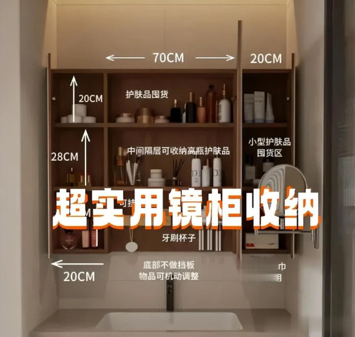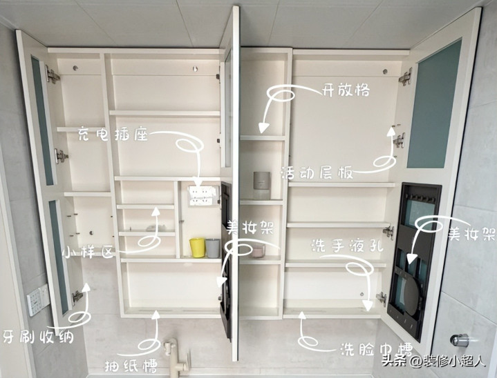 作念完镜柜算计打算,内部的收纳也要分区,它等闲内部有三四层傍边,你要把柄常用的东西去笃定好位置,每层放什么东西,这么作念能齐备分类,减少杂沓的嗅觉。
