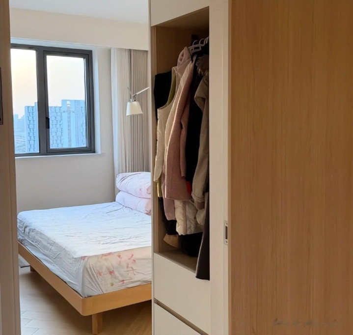 4、卧室预留“次净衣区” 第一次装修不懂,在卧室床边去放了床尾凳,思着去收纳衣着, 当今思思其时我脑子是不是进水了,豪侈大几百去买什么床尾凳呢?我打造一个次净衣区不香吗?