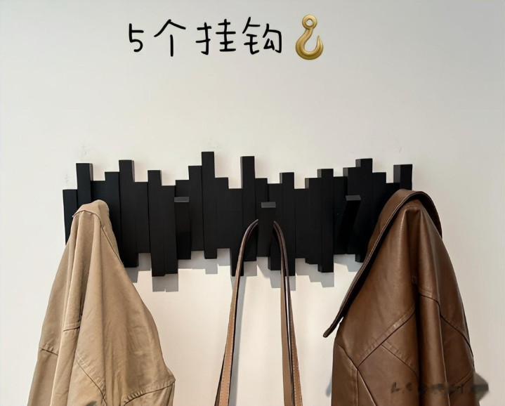 2️⃣墙壁挂钩 玄关背面不错装上一行挂钩,这个挂钩是不错我方网上定制, 主要动作念是收纳衣着的区域,能把一家东说念主穿的衣着都整皆的挂上去。