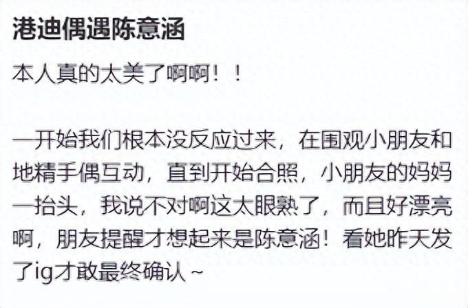 好好的一个热搜,硬生生造成了陈意涵的大型造型翻车现场。 谁能思到一天之后,回转就来了。 3月19日,多位网友在香港迪士尼偶遇陈意涵,此次的她胜利换了个东谈主。