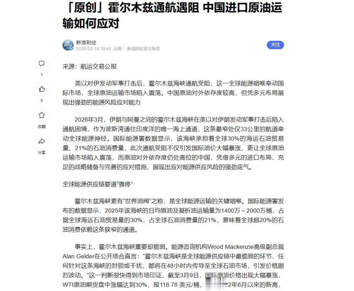 一、七艘油轮南海掉头,到底发生了什么? 事件的开头让我们把见解转向中东石油命根子的霍尔木兹海峡提及,2026年3月好意思以伊陡然爆发突破,环球30%的海运石油贸易被短暂掐断,因为这处海峡被伊朗创新卫队舟师晓谕禁闭,一时之间油价应声暴涨,原油期货价钱一度飙升到了118,好意思元,这是什么主见,这是近四年来的最高点。