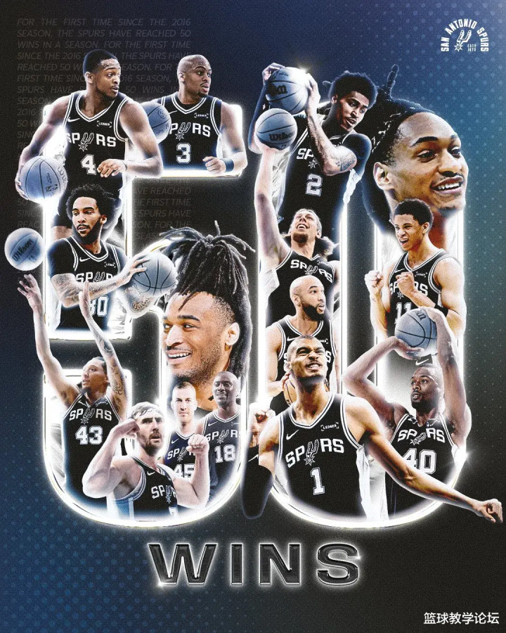 马刺上一次拿到50胜,还要回想到2016-17赛季,距今还是九年。其时马刺获取61胜21负,相同定约第二,仅次于豪杰的67胜15负。不知谈有些许球迷还铭刻那支马刺首发威望:帕克、丹尼-格林、伦纳德、阿尔德里奇、大加索尔。
