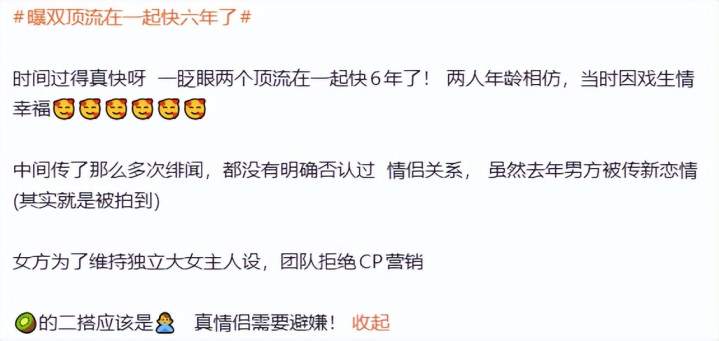 该音书莫得明确指向艺东谈主姓名,却亦然这个原因而引起了更多的忖度和盘考。 而过程互助搭档与网传六年时长的对比,有两位艺东谈主险些成了各人关注的焦点。