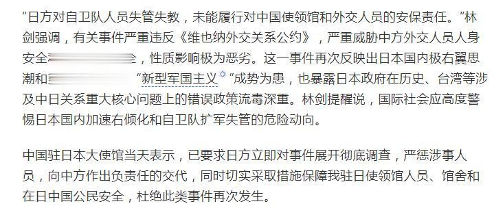 反过来看日方的回复,就有点轻了。 日本警方暴露“深表缺憾”,并晓示将对中国驻日使馆践诺24小时教导。