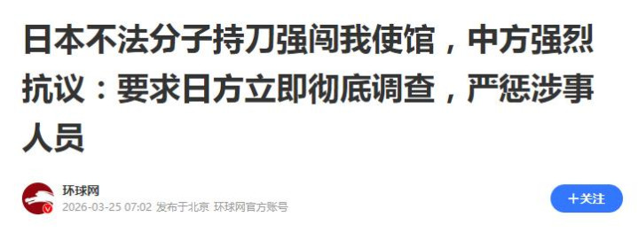 闯馆的是现役军官,不是酒后失容的市民;口中喊的是带圣洁裁决意味的顶点恫吓,不是街头骂战;案发点是中国驻日大使馆,不是鲁莽民间门径。 若是这么的案件还被归入“个案惩处”,那就等于默许更大的风险连接在暗处发酵。