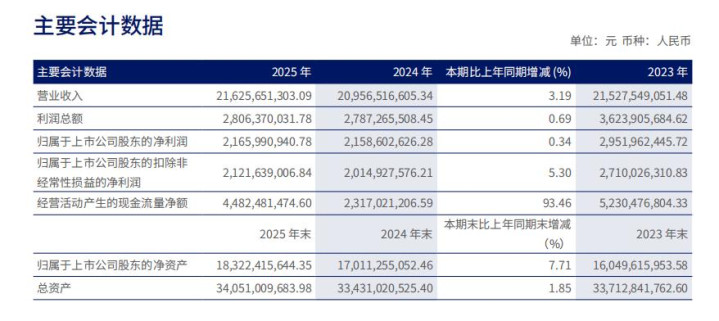 中枢事迹:营收利润双增,财务理解闲静 年报数据披露,2025年全年,公司收场营业收入216.26亿元,同比增长3.19%;包摄于上市公司股东的净利润达到21.66亿元,同比增长0.34%;计议举止产生的现款流量净额更是录得44.82亿元,同比大幅增长93.46%。基本每股收益为0.45元。同期,公司拟向整体股东每10股派发现款股利4.10元(含税),体现了对股东求教的爱好。